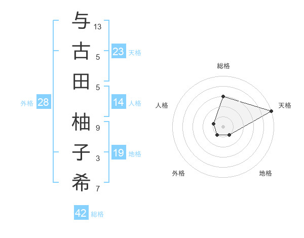 与古田 柚子希さんの天格は23画の5点!