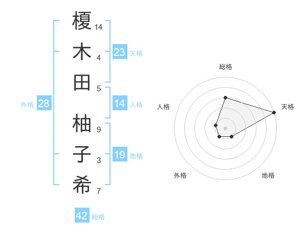 榎木田 柚子希さんの天格は23画の5点!
