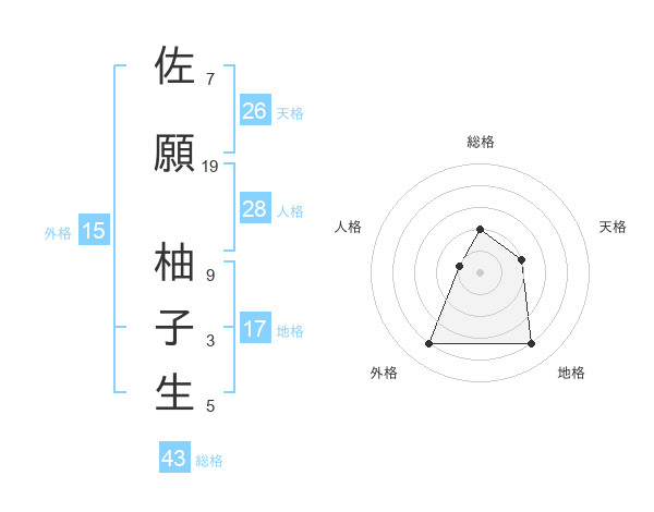 佐願 柚子生さんを姓名の画数から五運を鑑定