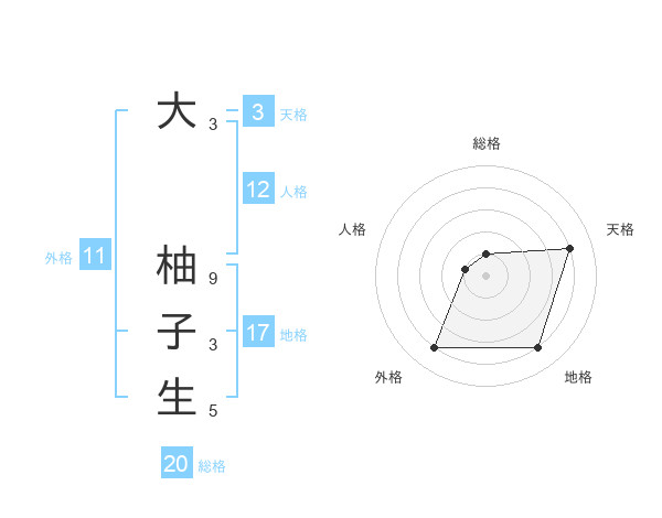 大 柚子生さんの総格は20画の1点!