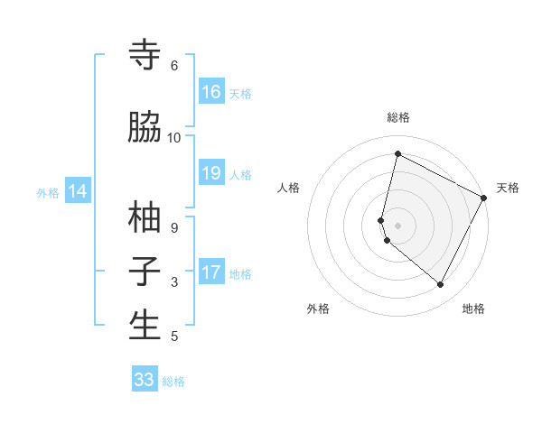寺脇 柚子生さんを姓名の画数から五運を鑑定