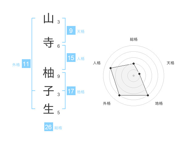 山寺 柚子生さんを姓名の画数から五運を鑑定