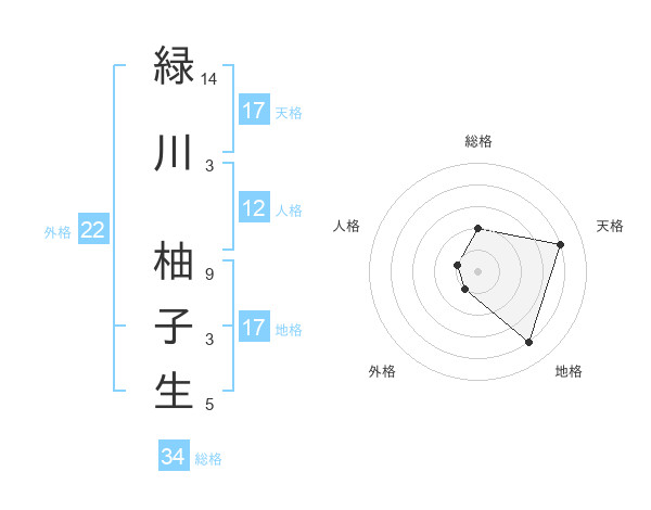 緑川 柚子生さんを姓名の画数から五運を鑑定