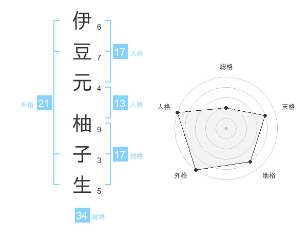 伊豆元 柚子生さんの天格は17画の4点!