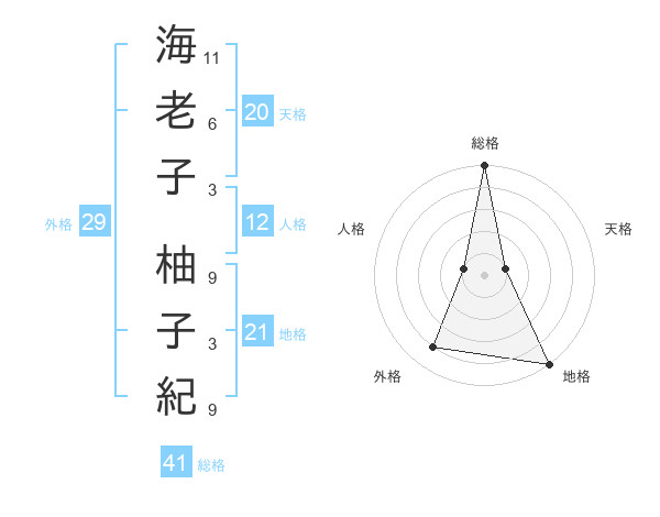 海老子 柚子紀さんの総格は41画の5点!