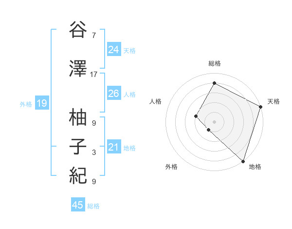 谷澤 柚子紀さんの天格は24画の5点!