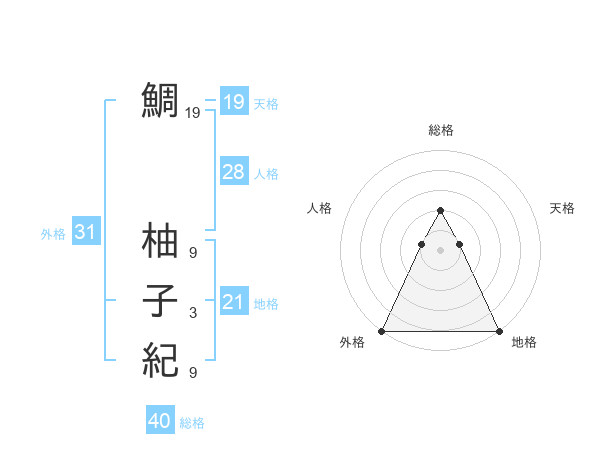 鯛 柚子紀さんを姓名の画数から五運を鑑定