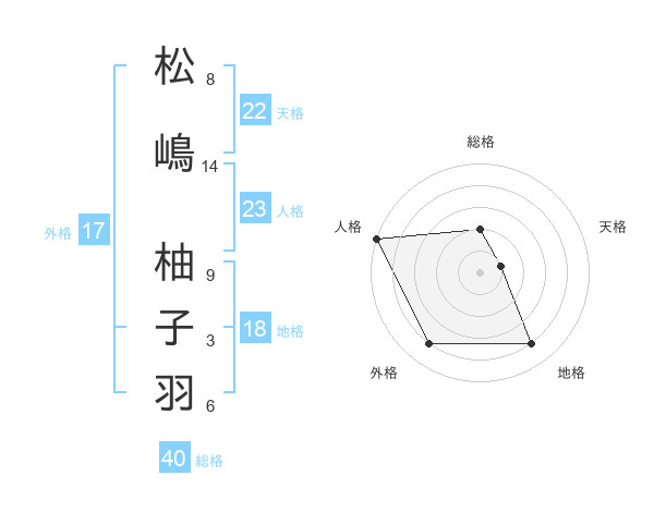 松嶋 柚子羽さんを姓名の画数から五運を鑑定