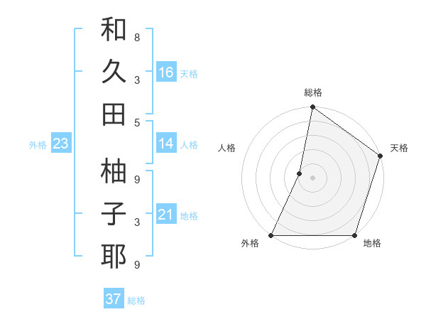 和久田 柚子耶さんの総格は37画の5点
