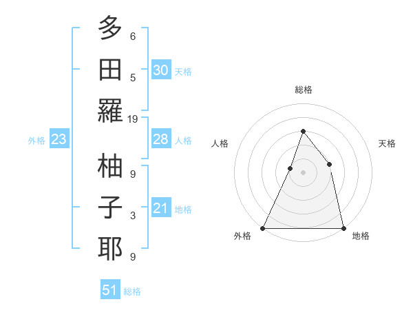 多田羅 柚子耶さんを姓名の画数から五運を鑑定