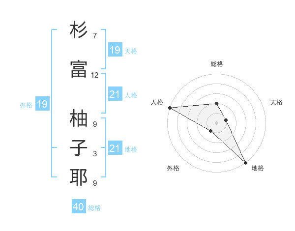 杉富 柚子耶さんを姓名の画数から五運を鑑定