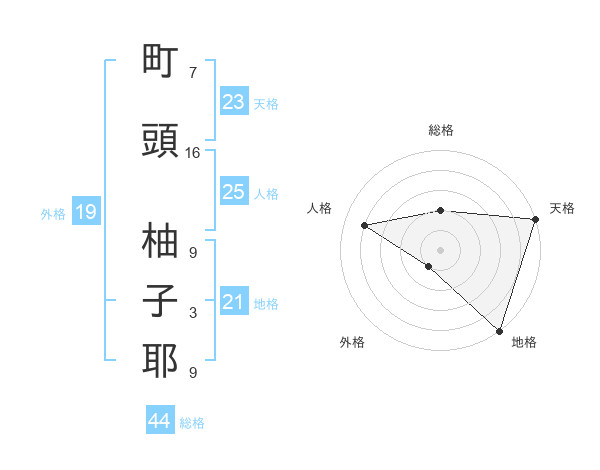 町頭 柚子耶さんの外格は19画の1点!