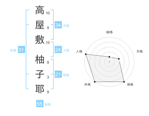 高屋敷 柚子耶さんの総格は55画の1点!
