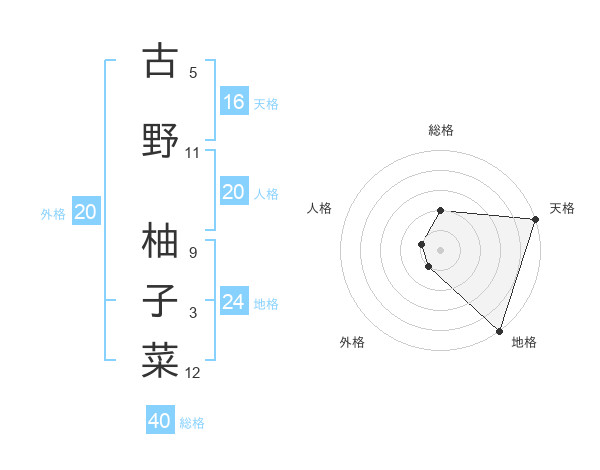古野 柚子菜さんの天格は16画の5点