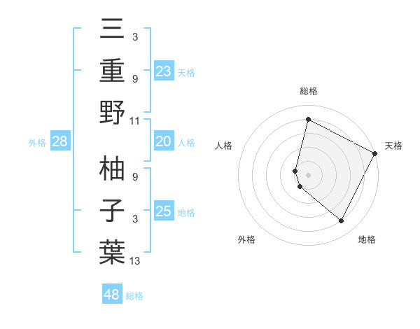 三重野 柚子葉さんを姓名の画数から五運を鑑定