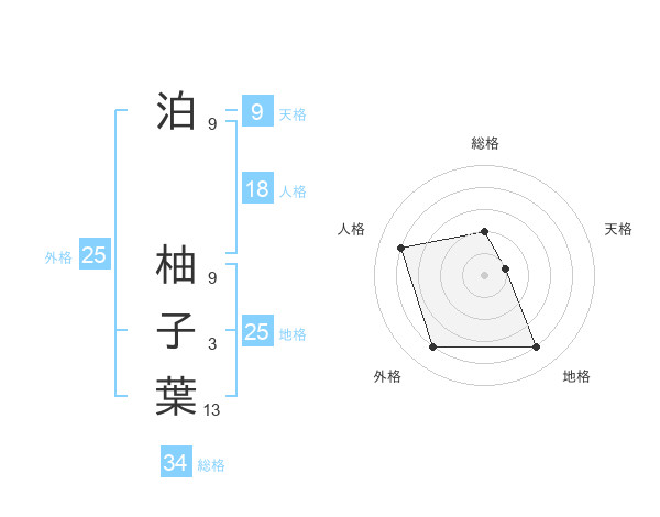 泊 柚子葉さんを姓名の画数から五運を鑑定
