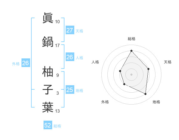 眞鍋 柚子葉さんを姓名の画数から五運を鑑定