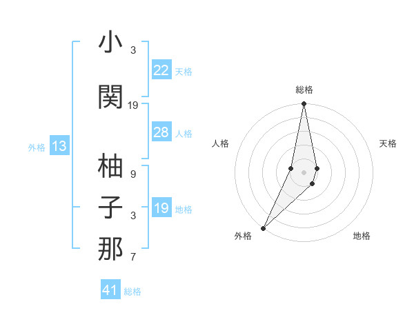 小関 柚子那さんの外格は13画の5点!