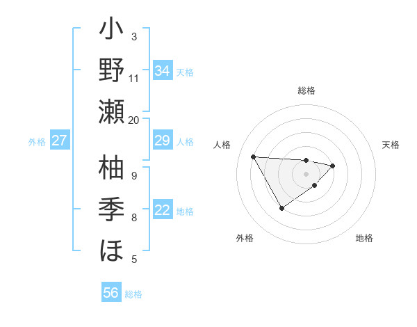 小野瀬 柚季ほさんの総格は56画の1点!