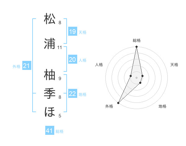 松浦 柚季ほさんを姓名の画数から五運を鑑定