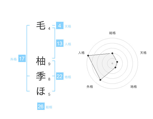 毛 柚季ほさんを姓名の画数から五運を鑑定