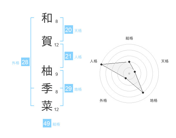 和賀 柚季菜さんを姓名の画数から五運を鑑定