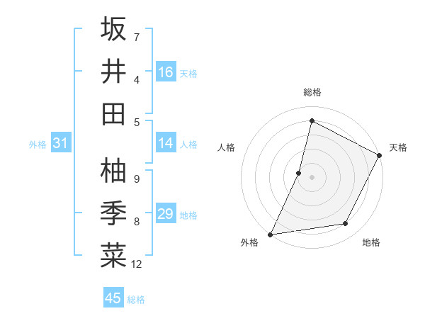 坂井田 柚季菜さんを姓名の画数から五運を鑑定