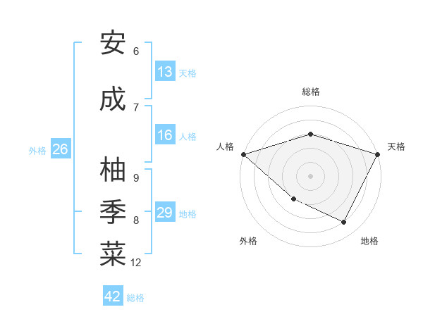 安成 柚季菜さんを姓名の画数から五運を鑑定
