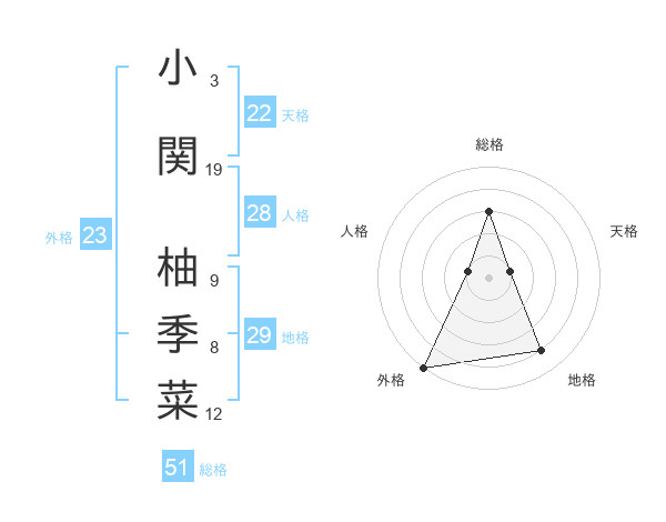 小関 柚季菜さんの外格は23画の5点!