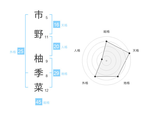 市野 柚季菜さんの総格は45画の4点!