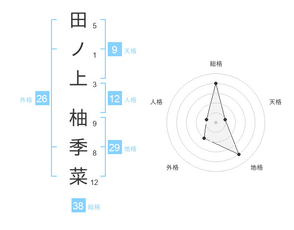 田ノ上 柚季菜さんを姓名の画数から五運を鑑定