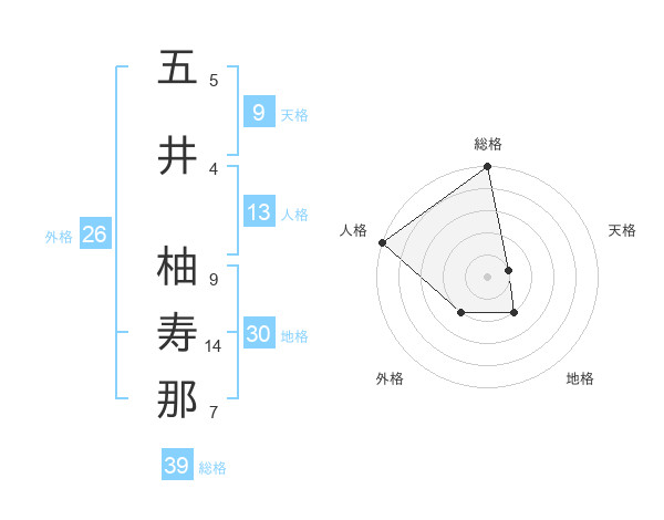 五井 柚寿那さんを姓名の画数から五運を鑑定