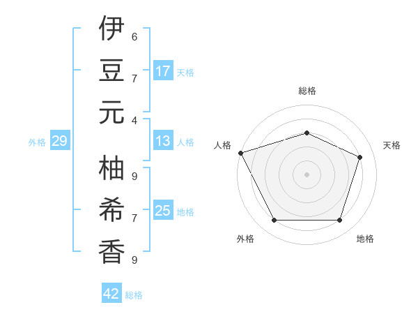伊豆元 柚希香さんの天格は17画の4点