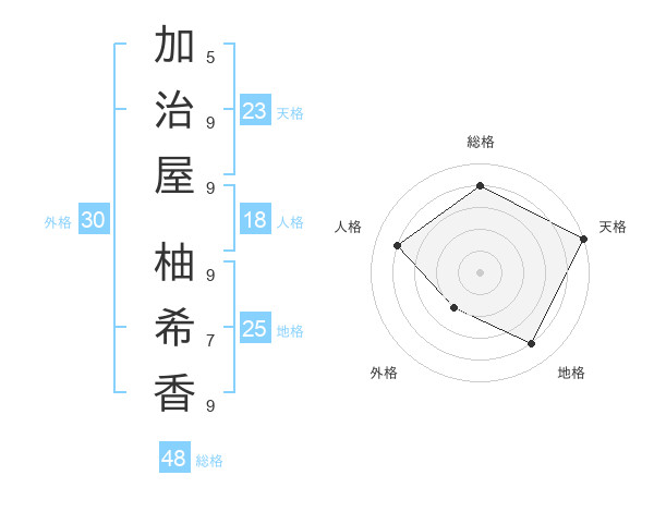加治屋 柚希香さんの天格は23画の5点!