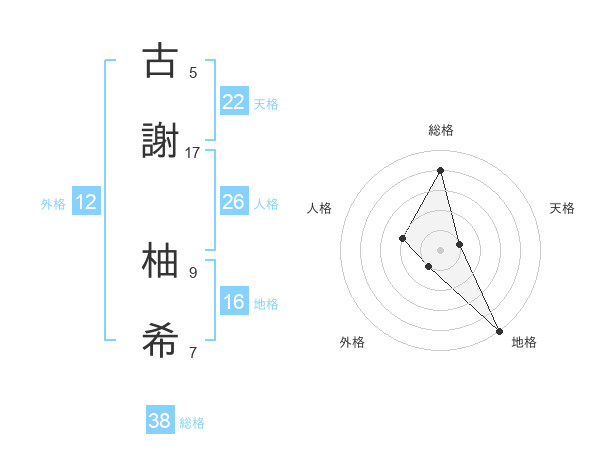 古謝 柚希さんを姓名の画数から五運を鑑定