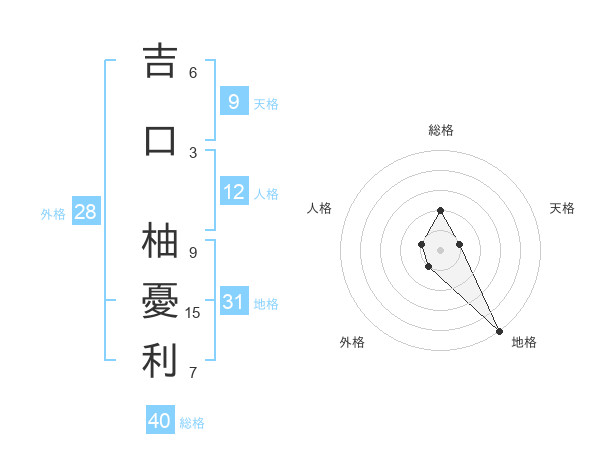 吉口 柚憂利さんの総格は40画の2点!