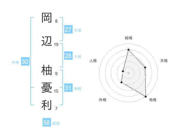 岡辺 柚憂利さんの外格は30画の2点!