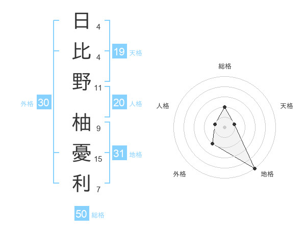 日比野 柚憂利さんを姓名の画数から五運を鑑定
