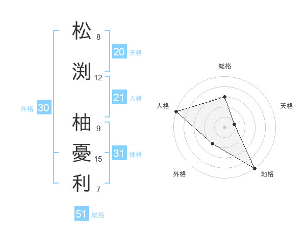 松渕 柚憂利さんを姓名の画数から五運を鑑定