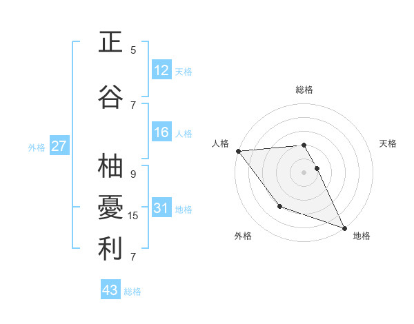 正谷 柚憂利さんを姓名の画数から五運を鑑定
