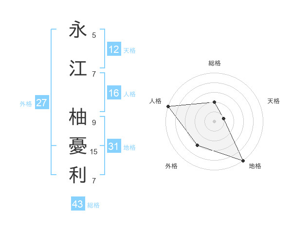 永江 柚憂利さんの総格は43画の2点!