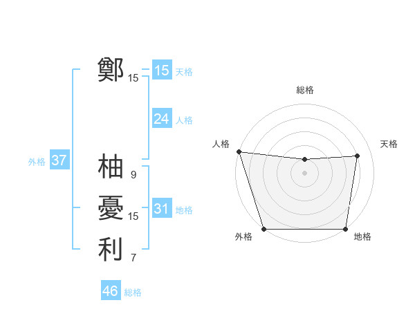 鄭 柚憂利さんを姓名の画数から五運を鑑定