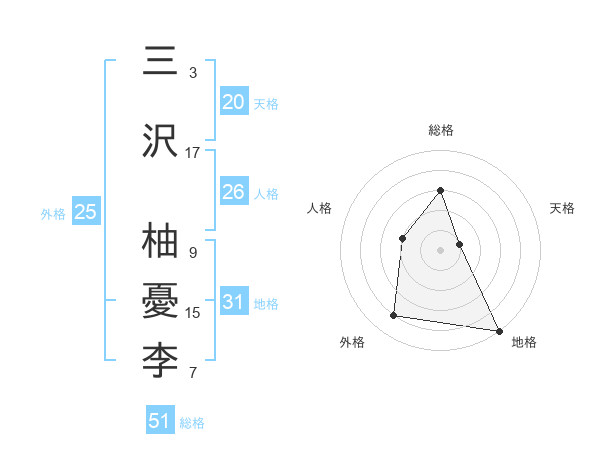 三沢 柚憂李さんの総格は51画の3点!