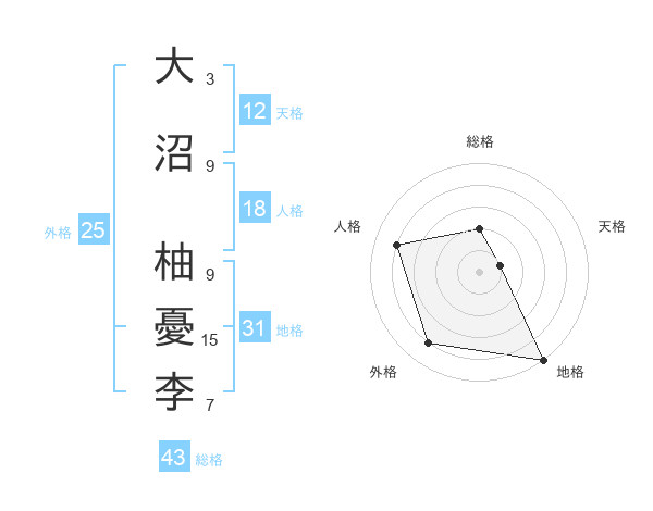 大沼 柚憂李さんを姓名の画数から五運を鑑定