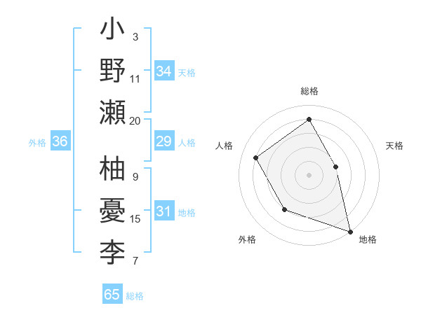 小野瀬 柚憂李さんを姓名の画数から五運を鑑定