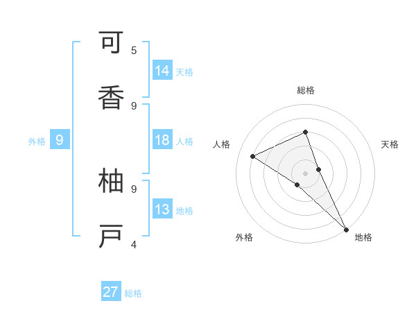 可香 柚戸さんを姓名の画数から五運を鑑定