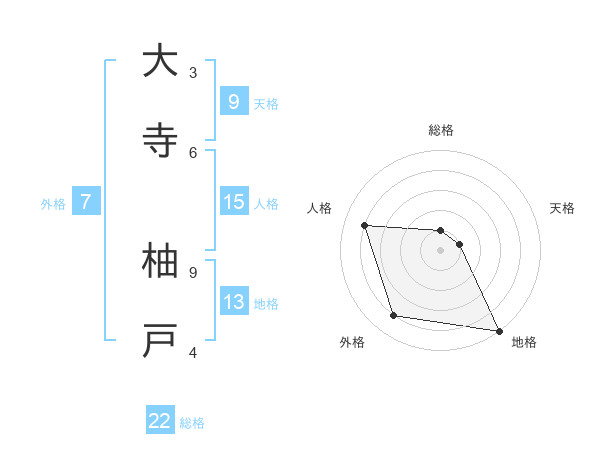大寺 柚戸さんの総格は22画の1点!