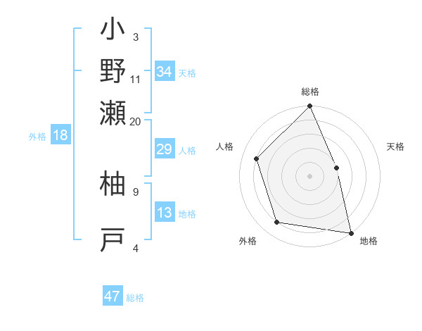 小野瀬 柚戸さんを姓名の画数から五運を鑑定