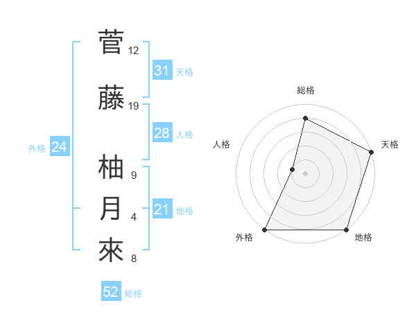 菅藤 柚月來さんの総格は52画の4点!