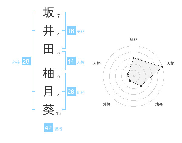坂井田 柚月葵さんを姓名の画数から五運を鑑定